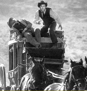 der Sonne natürlich, die steht dann 2,5 cm weiter rechts. Also, zurück zum Plan ..." Der Plan war einfach und brutal. Frankies Bande wollte die Postkutsche von Sacramento überfallen und die Insassen ausrauben. Frankie sollte das Geld und den Schmuck der Frauen bekommen. Den anderen versprach Frankie jeweils einen Kuss von den Damen, die vielleicht in der Kutsche sein würden. Damit waren sie zufrieden und schritten zur Tat. Kaum fuhr die Kutsche an der Scheune vorbei, sprang Fuzzfried, der sich für diesen Anlass auch extra rasiert hatte, auf seinen Gaul, galoppierte hinterher, schwang sich bei günstigen Wind-