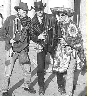 Plötzlich zischte ein Pfeil um wenige Millimeter an Gringos Ohr vorbei. „Ja Saxendie! Ich mog mi ned piercen lassen!" brüllte er. Sein Schrei wurde erstickt von ohrenbetäubenden Indianergeheul. Zapata erkannte an der rauen Färbung der spitzen Schreie, dass es sich um Shoshonen handeln musste. Denn diesen Dialekt würde er wohl nie vergessen, nachdem er nur knapp ihrem Marterpfahl vor 30 Jahren als Baby entrinnen konnte. Als ein zweiter Pfeil den Hut von Zorro durchbohrte, kippten Gringo und Zapata den Wagen um, und die drei nahmen dahinter Deckung. Erst als der Häuptling Ilonatschi bei Zorro sah, machte er dem Trubel ein Ende und ergriff das Wort: „Hugh--Ilonatschi, was machst du da mit dem hünenhaften Blondchen. Nur weil du ein Halbblut bist, musst du nicht jedem