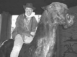 dem neuen Pferdeparkhaus am Ortsausgang. Dort sagte Zorro zu Zapata: „War des grad dei Ernst? Der Hoss dei Zwillingsbruada? Der schaut ja ganz anders aus als Du!" Darauf Zapata: „Na wirklich! I schwör's beim Sombrero meiner Oma - der Hoss is pfeilgrod mei Zwillings-bruada!" Gringo meinte: „Dann laßt's uns koa Zeit verlier'n. Bevor de Komanchen de scheene Belohnung eisackln, oder de zwoa Gauner am Marterpfahl grillen, befrei ma's doch liaba!" |
