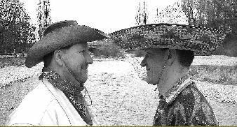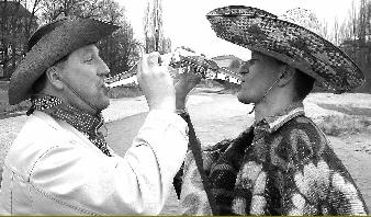 harten Getränken, feierten die vier bis lange in den frühen Morgen. Der Höhepunkt war dabei die Beweisführung von Zapata, dass er der Zwilling von Hoss ist. Zorro und Gringo wollten das nicht glauben. Auf der einen Seite Hoss: ein gewaltiges, gestandenes Mannsbild - ein gediegener Prachtcowboy wie er im Karl-May-Roman vor